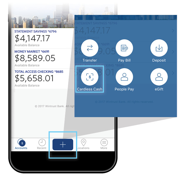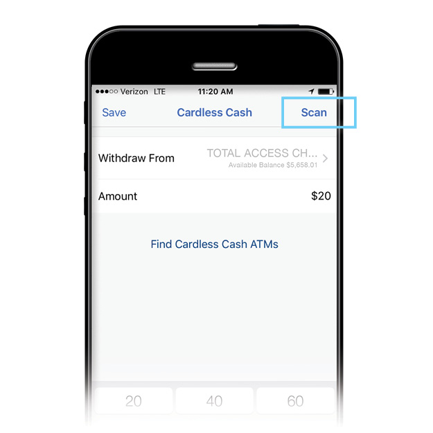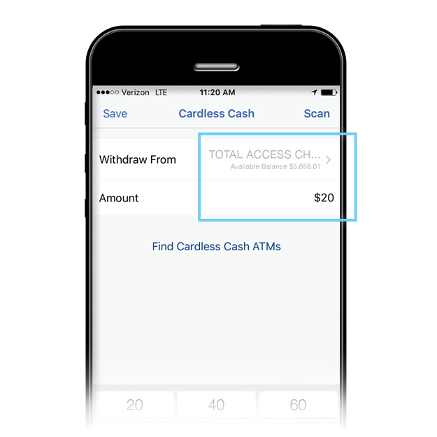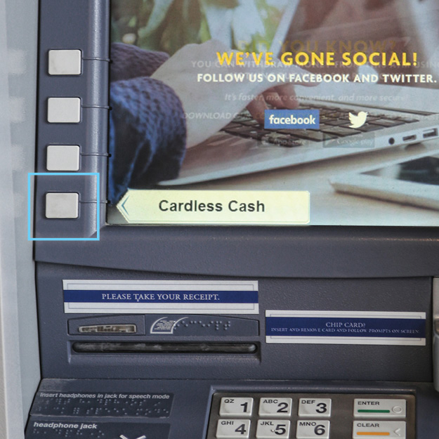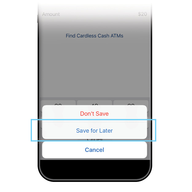 Cardless Cash allows you to withdraw cash from the ATM using your smartphone. The feature increases convenience and takes the debit card out of the mix, offering added security with no chance of card skimming.