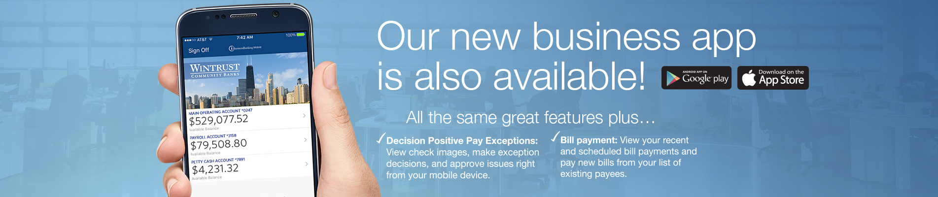 Our mobile app is redesigned and better than ever. Whether you’re checking your balance, depositing a check, paying a bill or transferring funds, we're ready to deliver a new level of speed, convenience and security.